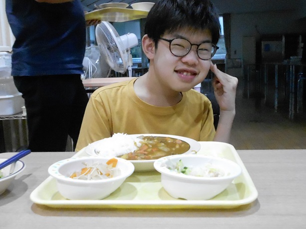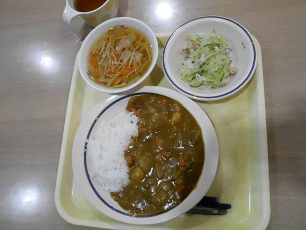 本日の夕食のメニューはカレーライス、ツナサラダ、野菜スープでした。カレーライスは舎生のリクエストです♬