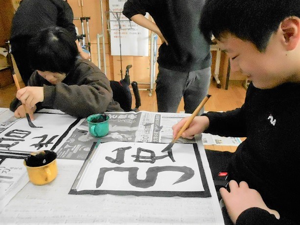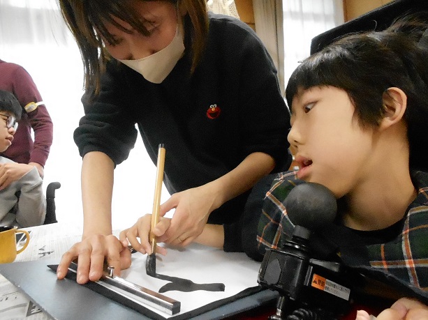 新しい年の初めに書き初めをしました。「もう一枚」と言いながら、熱心に取り組み完成させることができました。