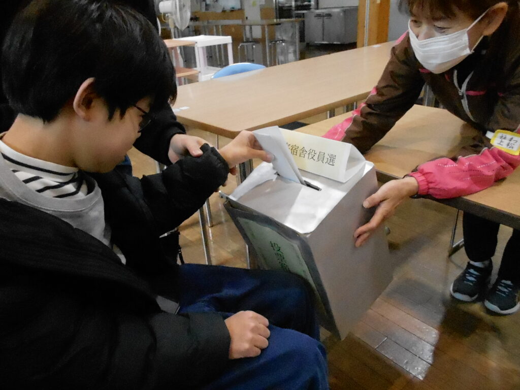新年度の舎生会会長、副会長、書記を決める選挙がありました。受付で投票用紙をもらい、記入し、選挙管理委員が見守る中、投票箱に一票を投じました。その後、開票が行われ、新役員が決定し、舎生会役員のバトンが繋がれました。