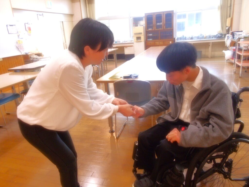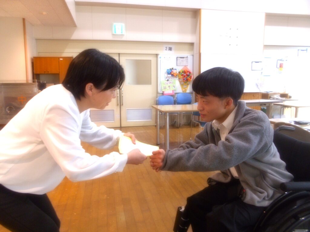 令和8年度寄宿舎新入生歓迎会の招待状を、舎生会会長はじめ役員さんが、校長先生、副校長先生や栄養教諭にお渡しし、今年度最後の仕事を終えました。卒業生である会長は、卒業をお祝いするメッセージをもらい、とても嬉しい表情になりました。一年間ありがとうございました。