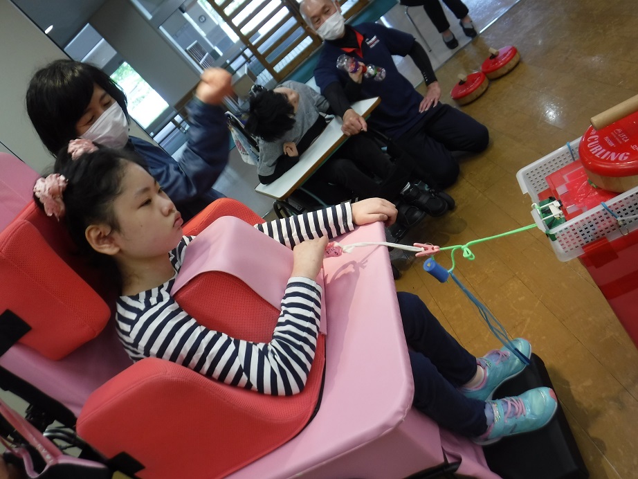先生と一緒に狙う方向を考えたり,どのストーンを使うかを相談したりして,「3.2.1.(ぎゅ!)」