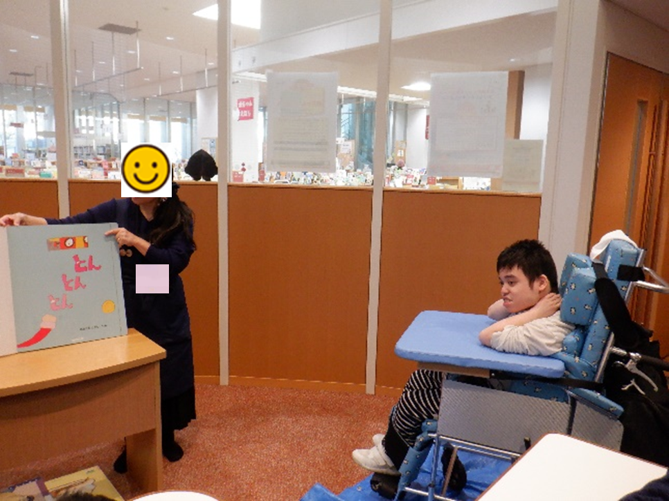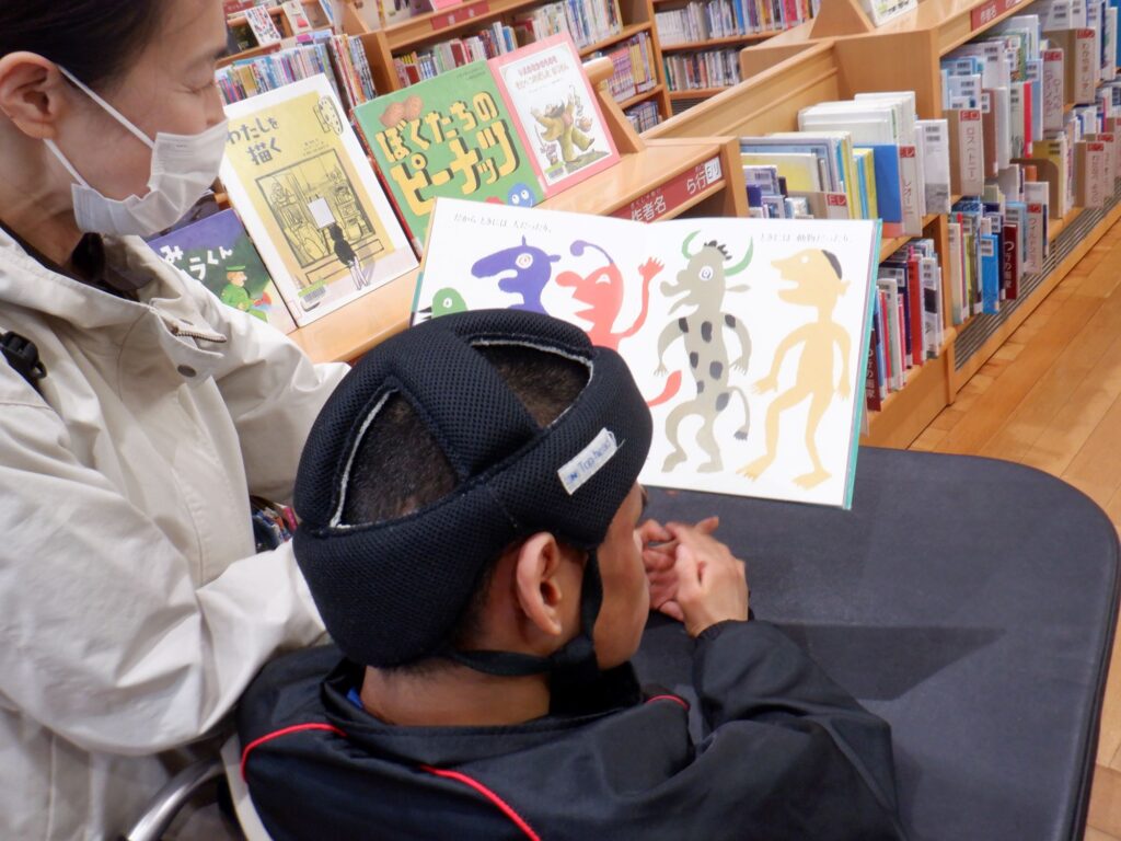館内の散策では、たくさんある本に圧倒されましたが、本に手を伸ばすなどして、興味を示していました。