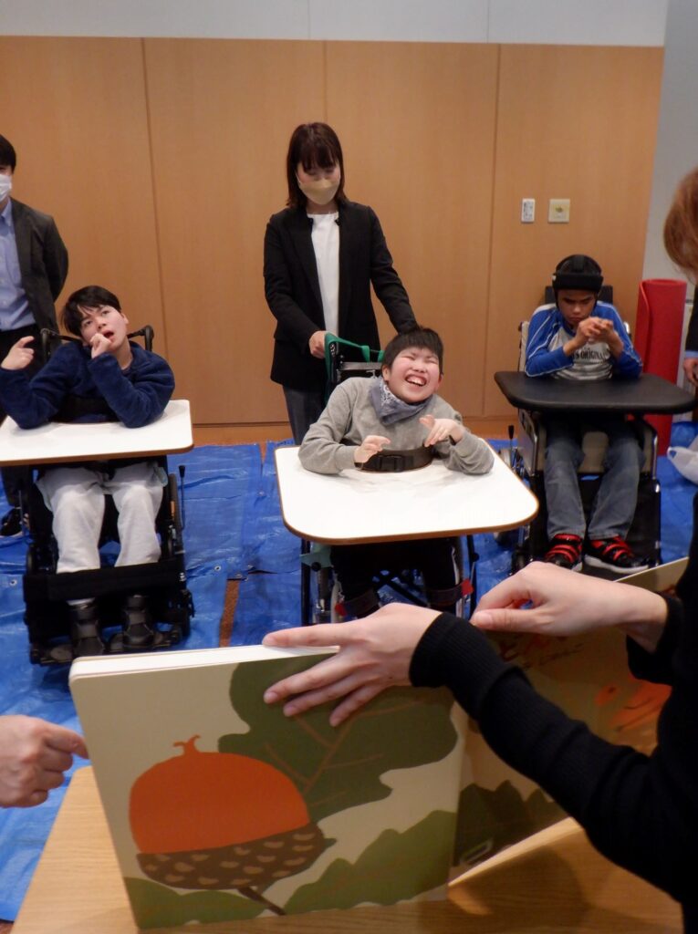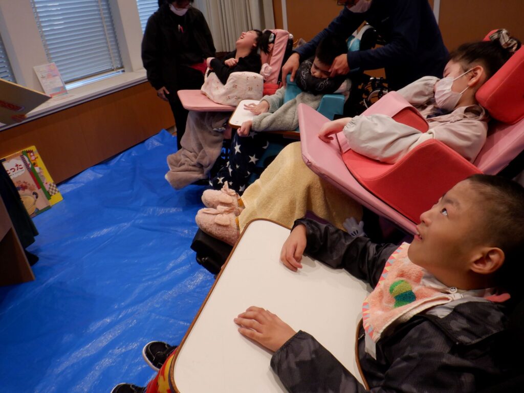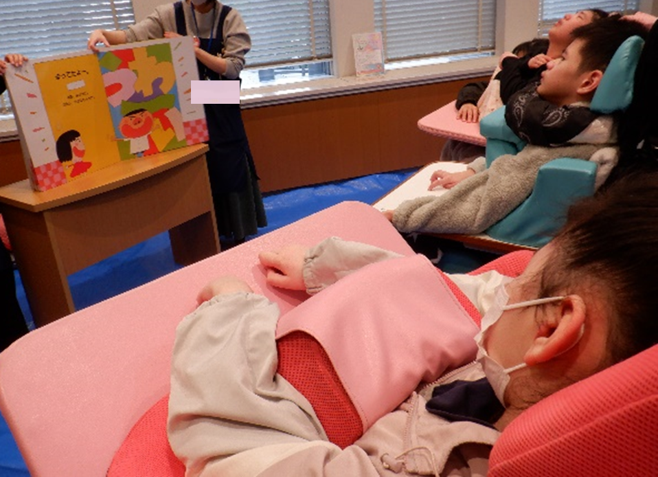 読み聞かせでは、大きな絵本をよく見て、話に耳を傾けることができました。