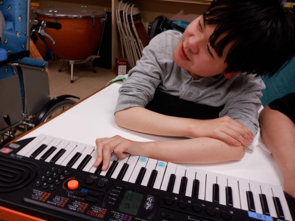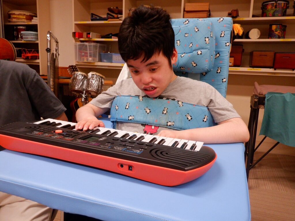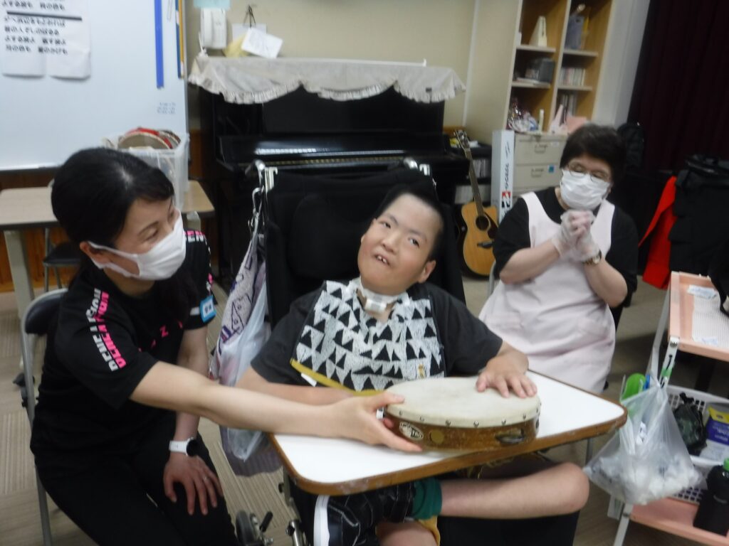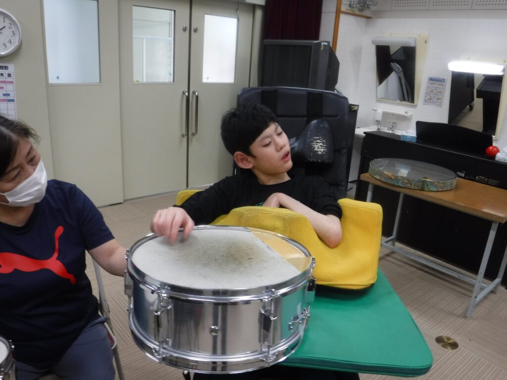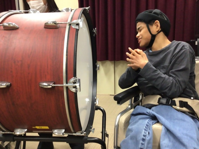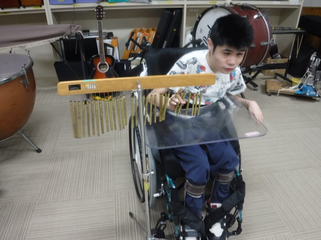 高等部Ⅲ-2グループでは、1学期から、いろいろな楽器の音を聴いたり鳴らしたりしました。自分の好きな音色を聴いたり、自分の鳴らす方法を探したりしながら音楽を楽しんでいるので、その様子をご覧ください。