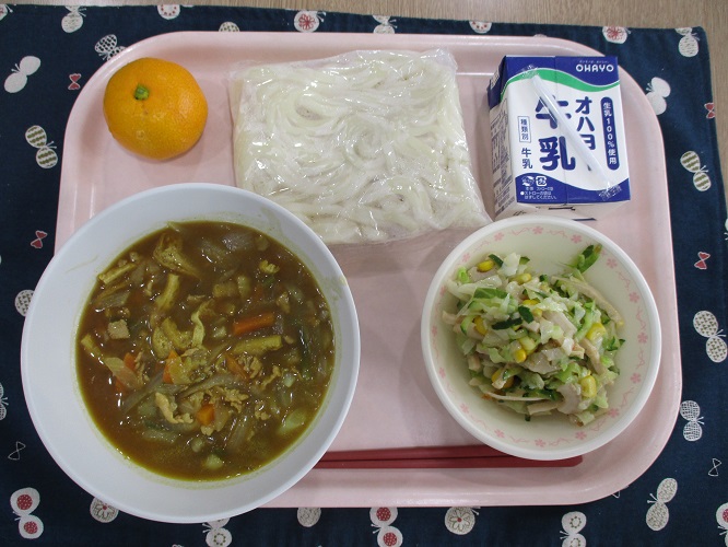 カレーうどん れんこんサラダ 牛乳