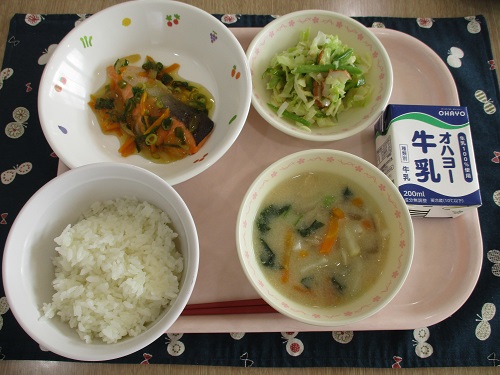 ごはん 鮭の野菜あんかけ ごま汁 塩こうじ和え 牛乳