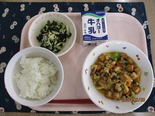 ごはん 厚揚げのカレー煮 かふうあえ 牛乳